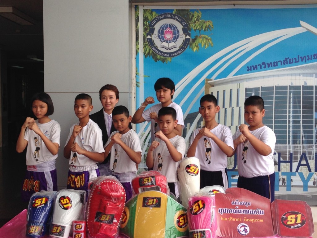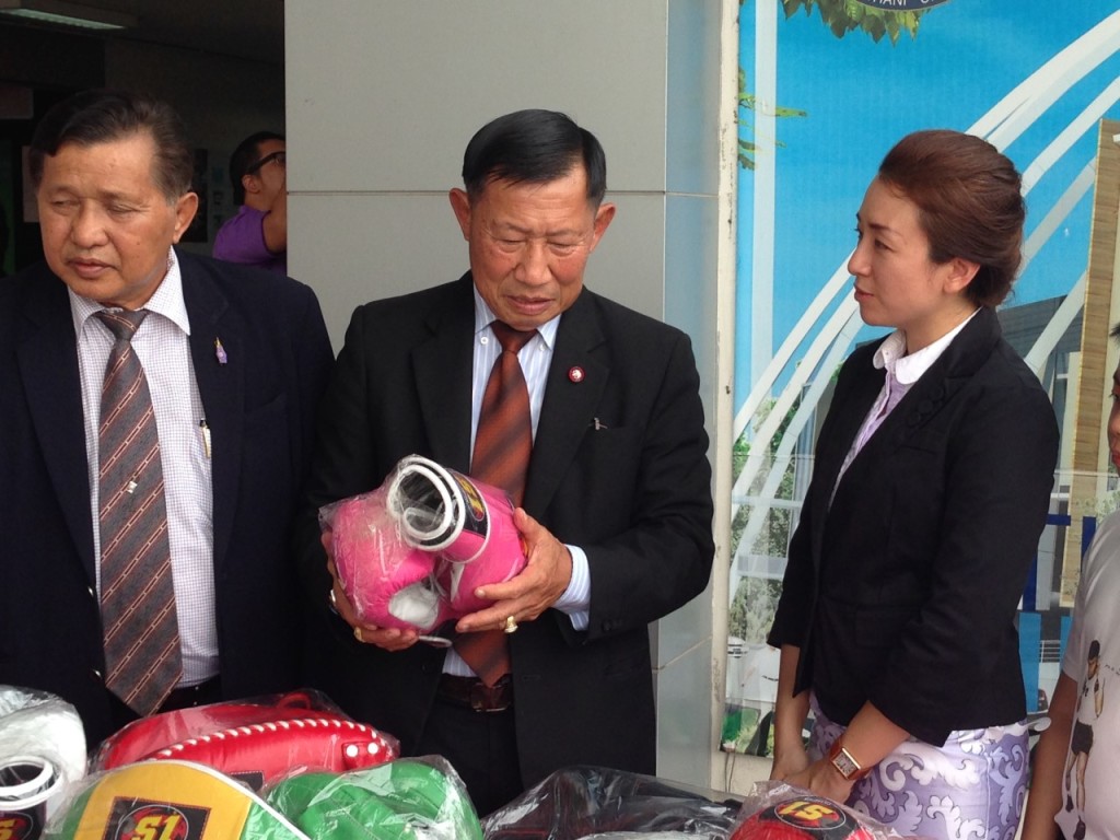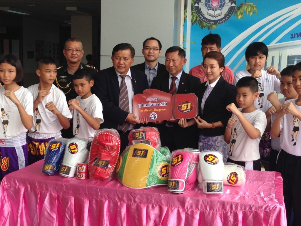 มาดามโอ๋มอบอุปกรณ์เอสวัน สนับสนุน ศูนย์ศิลปมวยไทย มหาวิทยาลัยปทุมธานี(ลานมวยครูเสือ) โดย ดร ดิเรก ถึงฝั่ง ประธานที่ปรึกษาศูนย์ฯเป็นผู้รับมอบ