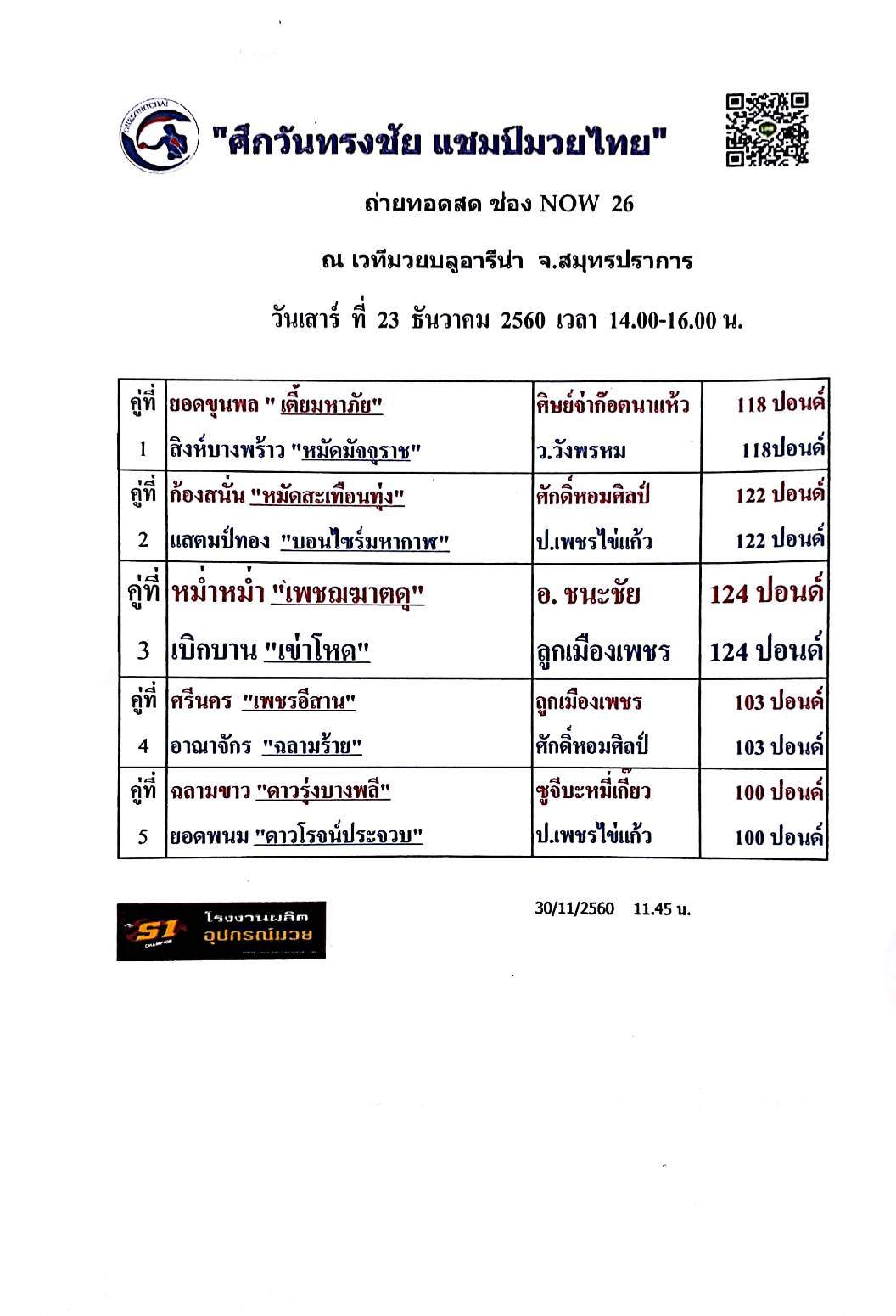 Home คลิปวีดีโอ ข่าว/กิจกรรม “ศึกวันทรงชัย แชมป์มวยไทย” วันเสาร์ที่ 23 ธันวาคม 2560 ณ เวทีมวยบลูอารีน่า จังหวัดสมุทรปราการ คลิปวีดีโอข่าว/กิจกรรมข่าววันทรงชัยศึกวันทรงชัย “ศึกวันทรงชัย แชมป์มวยไทย” วันเสาร์ที่ 23 ธันวาคม 2560 ณ เวทีมวยบลูอารีน่า จังหวัดสมุทรปราการ By admin - December 21, 2017 347 Facebook Twitter Pinterest WhatsApp