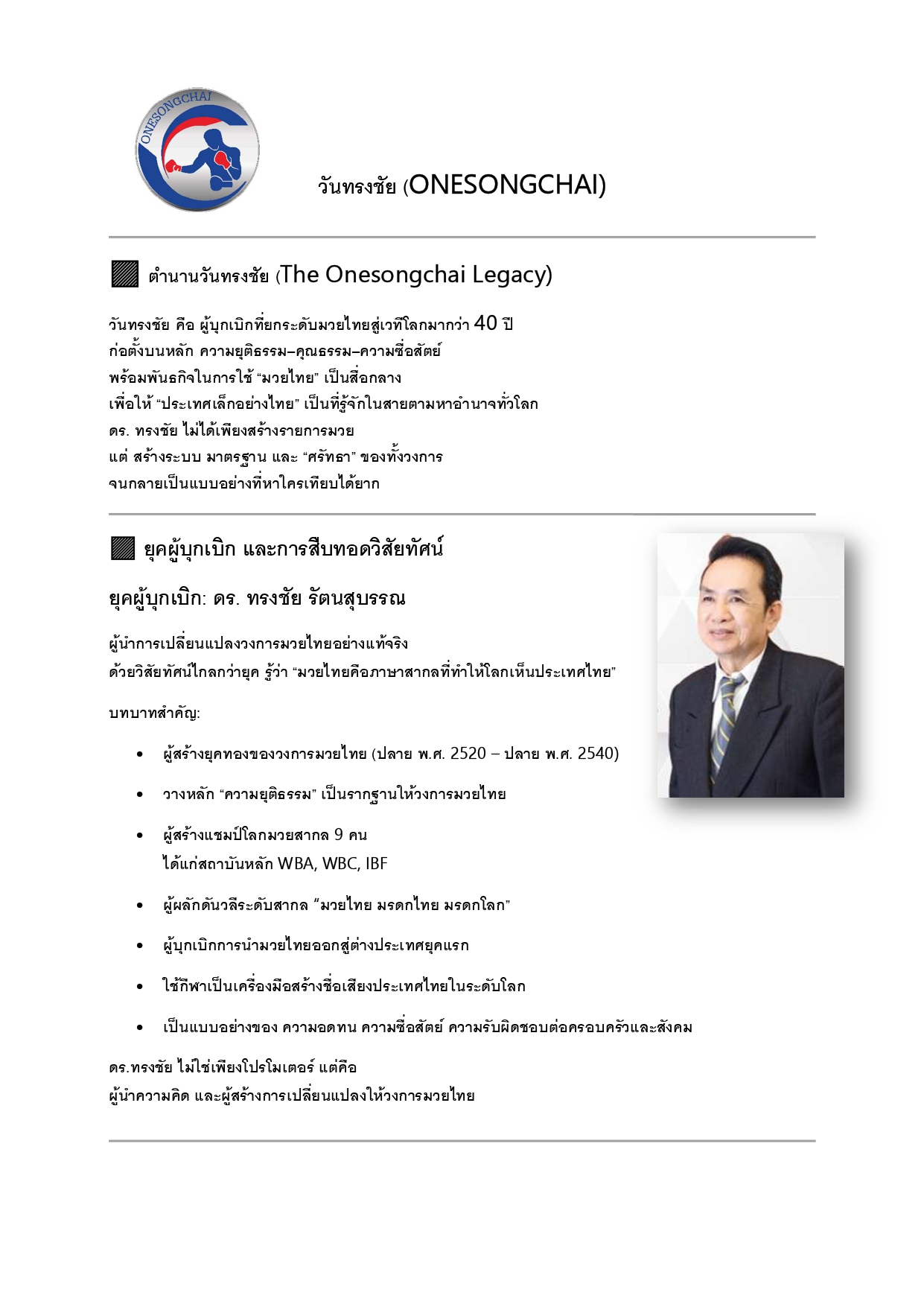ดร. ทรงชัย รัตนสุบรรณ คือหนึ่งในบุคคลสำคัญที่สุดในประวัติศาสตร์วงการมวยไทย