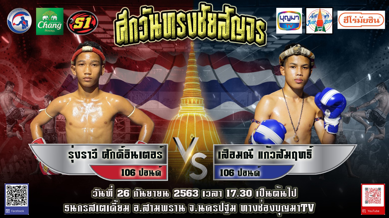 ยิ่งใหญ่สะเทือนพสุธา สะท้านจอตู้ ส่งท้าย”ยอดมวยวันทรงชัย ไทยรัฐทีวี” เสาร์ที่ 26 กันยายนนี้นัดส่งท้ายที่รวมพลังความมันส์ อัดแน่นรายการ10คู่ดูเต็มอิ่ม พร้อมการชิงแชมเปี้ยนถึง 2รุ่น 1ในนั้นคู่มหาโหดแห่งปีที่คอมวยรอคอย..ช่อฟ้า ท.แสงเทียนน้อย ถล่ม ยอดขุนทัพ สก.สุไหงยิมส์เดือดแน่ทุกองศา ไฟท์นี้บทพิสูจน์ใครดีใครอยู่ฯ