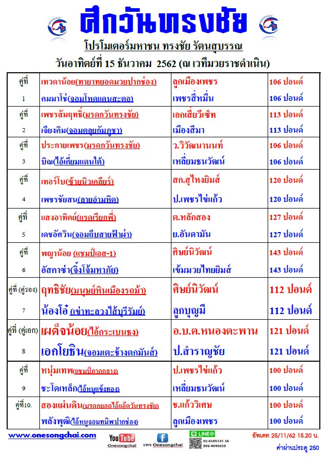 Home ข่าววันทรงชัย ศึกวันทรงชัย 15 ธันวาคม 2562 (ณ เวทีมวยราชดำเนิน ) ข่าววันทรงชัยโปรแกรมการแข่งขันศึกวันทรงชัยราชดำเนิน ศึกวันทรงชัย 15 ธันวาคม 2562 (ณ เวทีมวยราชดำเนิน ) By admin - December 4, 2019 348 Facebook Twitter Pinterest WhatsApp ศึกวันทรงชัย 15 ธันวาคม 2562 (ณ เวทีมวยราชดำเนิน )