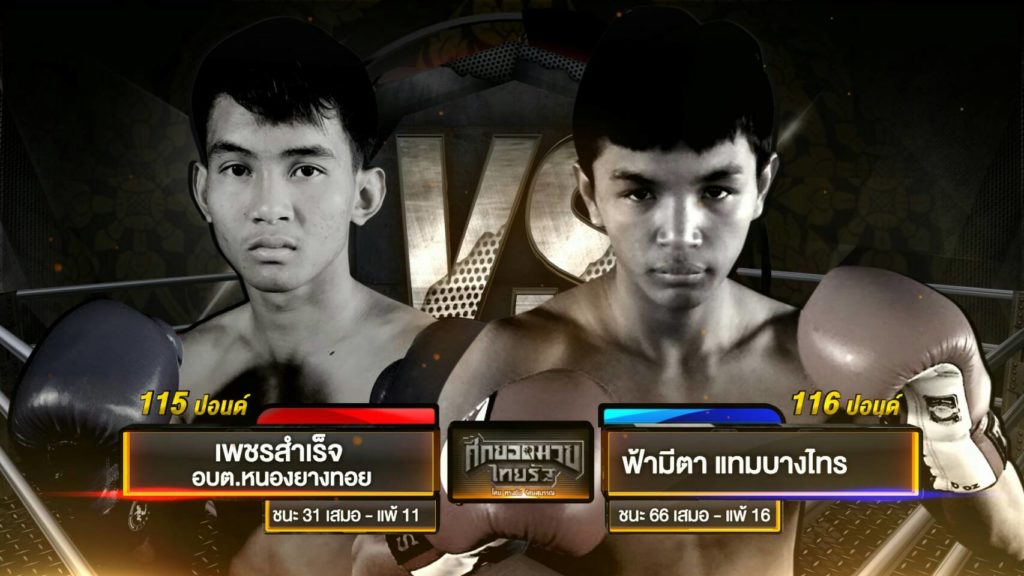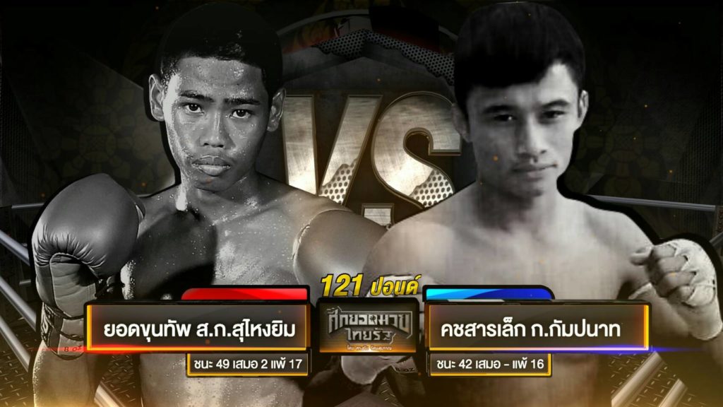คู่1 เข่าเดืิอดแดนอีสาน “กริชทองคำ ร.ร.กีฬาโคราช” ชน แชมป์แดนใต้ “เห่าดง นงค์ลักษณ์กุ้งเผา” คู่2 จอมฝีมือจากศรีณรงค์ “ยอดขุนทัพ ศก.สุไหงยิมส์” ประจัญบาน จอมโหดเมืิองสุรินทร์ “คชสาร ก.กัมปนาท คู่รอง จอมน็อคเอ้าท์ไทยรัฐ”เพชรสำเร็จ อบต.หนองย่าง” ถล่ม ยอดมวยพัเหลี่ยม”ฟ้ามีตา แทมบางไทร”