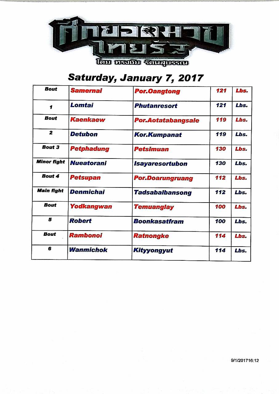 Home News Thai rath Fight. Saturday, January 7, 2017. At Montri Studio Ladprao 101 NewsPrograms Thai rath Fight. Saturday, January 7, 2017. At Montri Studio Ladprao 101 By admin - January 10, 2017 947 0 Facebook Twitter Pinterest WhatsApp Thai rath Fight. Saturday, January 7, 2017. At Montri Studio Ladprao 101. Start from 14.00 pm. By Promoter Songchai Ratanasuban