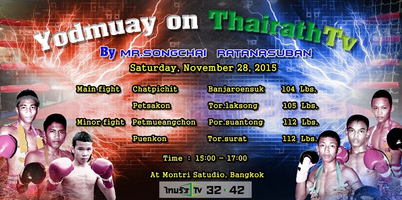 Home News Yodmuay on ThairathTV Saturday , November 28,2015 By MR.SONGCHAI RATANASUBAN NewsProgramsYod Muay ThaiRath Yodmuay on ThairathTV Saturday , November 28,2015 By MR.SONGCHAI RATANASUBAN By admin - November 23, 2015 1341 0 Facebook Twitter Pinterest WhatsApp